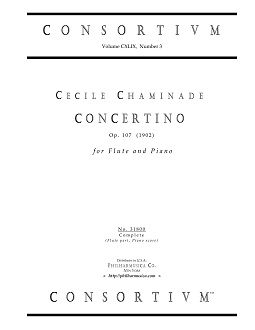 Chaminade, Cécile CONCERTINO, op. 107 (1902) Fl/pf 31800 Complete ($12.50) Reproduction of the original authentic 1902 French publication. With rehearsal letters, enhanced graphics, minor corrections. Flute part, 4 pages; piano score, 12 pages. Duration: ca. 8'00" 31800 |