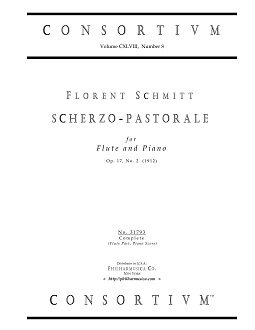 Schmitt, Florent SCHERZO-PASTORALE, op. 17 no. 2 (1912) Fl/pf 31793 Complete ($11.50) "An exotic flight into fantasy and fancy" --- Schmitt's masterwork for flute contains a graphically cleaned and enhanced flute part and piano score. With rehearsal numbers. Duration: ca. 4'15". 31793 |
