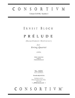 Bloch, Ernest PRÉLUDE (Recueillement (Meditation)) (1925) Vlns(2)/vla/vlc 32031 Sc & pts ($17.50) ERNEST BLOCH (1880-1959) Price is for a score and set of parts. 32031 |