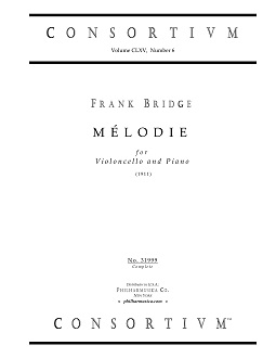 Bridge, Frank MÉLODIE (1911) Vlc/pf 31999 Complete ($11.50) FRANK BRIDGE (1879-1941) Cleaned print of the piano score and cello part, produced and printed in U.S.A. on quality U.S.-made paper and cover. There are performances of this work on YouTube, commercial CD, digital media. 31999 |