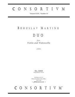 Martinu, Bohuslav DUO for Violin & Violoncello (1927) Vln/vlc 32003 Perf sc ($12.50) Bohuslav Martinu (1890-1959) DUO for Violin & Violoncello (1927). Price is for one (1) performance score. 32003 |