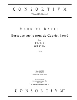 Ravel, Maurice Berceuse sur le nom de Gabriel Fauré Vln/pf 31875 Complete ($8.50) Newly typeset violin part, well-spaced over two pages, plus the traditional piano score (cleaned and graphically enhanced). Produced and printed in U.S.A. 31875 |