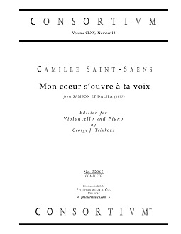 Saint-Saens, Camille Mon coeur s'ouvre à ta voix (1877) Vlc/pf 32065 Trinkous, Geo. Complete ($11.50) Camille Saint-Saens (1835-1921) Mon coeur s'ouvre à ta voix translates to "My heart opens to your voice," while this title is often referred to as "My heart at thy sweet voice." From SAMSON ET DALILA (1877). This is the edition for Violoncello and Piano by George J. Trinkous. 32065 |