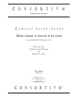 Saint-Saens, Camille Mon coeur s'ouvre à ta voix (1877) Vln/pf 32057 Wier, Albert E. Complete ($12.50) Camille Saint-Saens (1835-1921) Mon coeur s'ouvre à ta voix translates to "My heart opens to your voice," while this title is often referred to as "My heart at thy sweet voice." From SAMSON ET DALILA (1877). This is the classic edition for Violin and Piano by Albert E. Wier. 32057 |