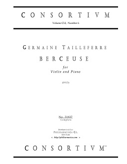 Tailleferre, Germaine BERCEUSE (1913) Vln/pf 31827 Complete ($8.50) Authentic edition (cleaned and graphically enhanced) of a work by a woman master composer who was one of 'Les Six.' Duration: ca. 2'50". 31827 |
