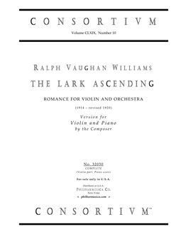Vaughan Williams, Ralph THE LARK ASCENDING (1914 - rev. 1920) Vln/pf 32051 Complete ($16.50) RALPH VAUGHAN WILLIAMS (1872-1958) Vaughan Williams originally composed THE LARK ASCENDING for violin and piano, then reworked it for violin and orchestra several years later. This is a cleaned and graphically-enhanced reprint publication, consisting of the solo violin part and a piano score. 32051 |