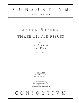 Webern, Anton THREE LITTLE PIECES, op. 11 (1914) Vlc/pf 31855 Perf scs (2) ($8.50) Price is for a set of two (2) performance scores, cleaned and graphically enhanced. Authentic edition. 31855 |