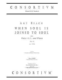 Beach, Amy WHEN SOUL IS JOINED TO SOUL, op. 62 Voice (t.c.)/pf 31889 Piano/vocal score ($9.50) AMY BEACH (1867-1944) Text by Elizabeth Barrett Browning. The print is cleaned and graphically enhanced, produced and printed in U.S.A. on quality paper and cover. Price is for one (1) piano/vocal score. 31889 |