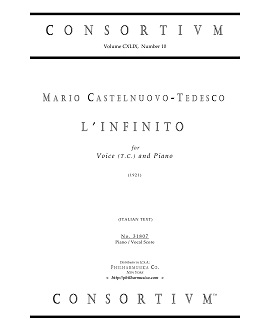 Castelnuovo-Tedesco, Mario L'INFINITO [Infinity] (1921) (It) Voice(t.c.)/pf 31807 Piano/vocal score ($9.50) Mario Castelnuovo-Tedesco (1895 - 1968). Italian text by Giacomo Leopardi (ca. 1819). Duration: ca. 4'45". Edition based on the original unedited publication by the composer. 31807 |