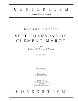 Enescu, George SEPT CHANSONS DE CLÉMENT MAROT (1908) (Fr) Voice(t.c.)/pf 31809 Piano/vocal score ($19.50) The complete seven-song cycle of Enescu's Op. 15 from 1908, in a reproduction of the original unedited publication by the composer, with enhanced graphics (and minor corrections). This major work was written when the composer was 27 years old. French texts by Clément Marot (1496-1544). Duration of a complete performance: ca. 15'00". There are multiple recordings of this work available on YouTube (and commercial CDs). 31809 |