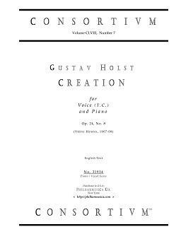 Holst, Gustav CREATION, op 24 no 8 (Vedic Hymns, 1907-08) Voice (t.c.)/pf 31914 Piano/vocal score ($9.50) An edition for solo voice and piano. 31914 |