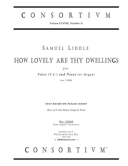 Liddle, Samuel How Lovely are Thy Dwellings (1908) (E) Voice (t.c.)/pf (org) 32040 Piano(org)/vocal sc ($10.50) SAMUEL LIDDLE (1867-1951) The text is based on Psalm 84 and the version is in the key of E-flat, for soprano or tenor and piano (or organ). Cleaned and graphically enhanced reprint of the original publication. Price is for one (1) Piano/vocal score. Produced and printed in U.S.A. 32040 |