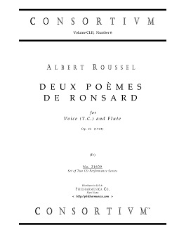 Roussel, Albert DEUX POÈMES DE RONSARD, op. 26 (1924) Voice(t.c.)/flute 31839 Perf scores (2) ($15.50) French texts by PIERRE DE RONSARD (1524-1585). The price is for a set of two (2) Performance Scores. Produced and printed in U.S.A. 31839 |