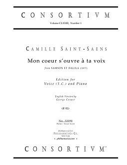 Saint-Saens, Camille Mon coeur s'ouvre à ta voix (1877) (F/E) Voice (t.c.)/pf 32090 Cooper, Geo. Piano/vocal score ($12.50) CAMILLE SAINT-SAENS (1835-1921) Mon coeur s'ouvre à ta voix translates to "My heart opens to your voice," while this title is often referred to as "My heart at thy sweet voice." Texts in both French and English. English version by George Cooper. 32090 |