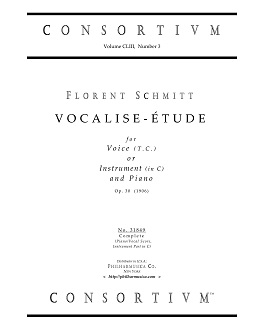 Schmitt, Florent VOCALISE-ÉTUDE, op. 30 (1906) Voice or instrument(C)/pf 31849 Complete ($9.50) Price includes a Piano/Vocal Score plus a Solo Part for Instrument in C. 31849 |