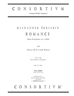 Scriabin, Alexander ROMANCE, op. posthume (ca. 1893) (E/F/G) Voice (t.c.)/pf 32086 Piano/vocal score ($10.50) ALEXANDER SCRIABIN (1872-1915) Text by Alexander Scriabin. English, French and German texts are cleaned for readability. The original Russian text is not. ROMANCE Text by Alexander Scriabin English version by Edward Agate I fain within thy heart would linger, To hold it captive as a dream, And stir thy young and tranquil spirit By storm of passion all supreme! I fain would make thee start and tremble At some rare thought as yet unknown, And thou for evermore to number The world's delight as thine alone, And thou for evermore to number This world of gladness, thine alone! 32086 |