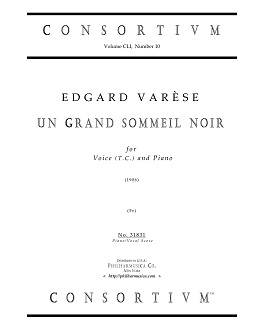Varese, Edgard UN GRAND SOMMEIL NOIR (1906) (Fr) Voice(t.c.)/pf 31831 Piano/vocal score ($10.50) First published by B. ROUDANEZ (Paris, 1906), this authentic print is cleaned and graphically enhanced. French text by Paul Verlaine. Price is for one (1) Piano/vocal score. Produced and printed in U.S.A. There are multiple performances of this work available on YouTube. 31831 |